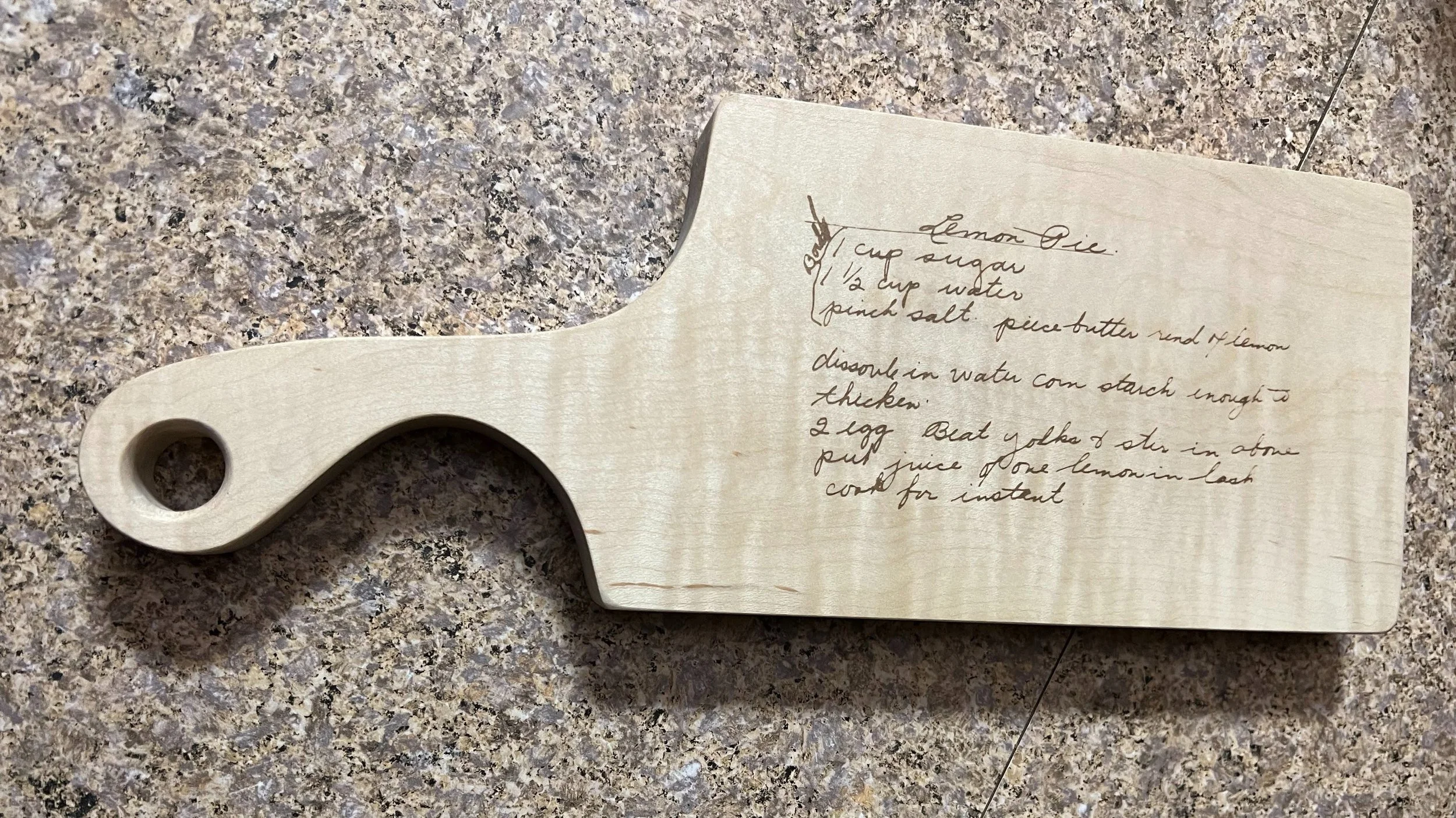 Gramma’s recipe engraved on a maple cutting board